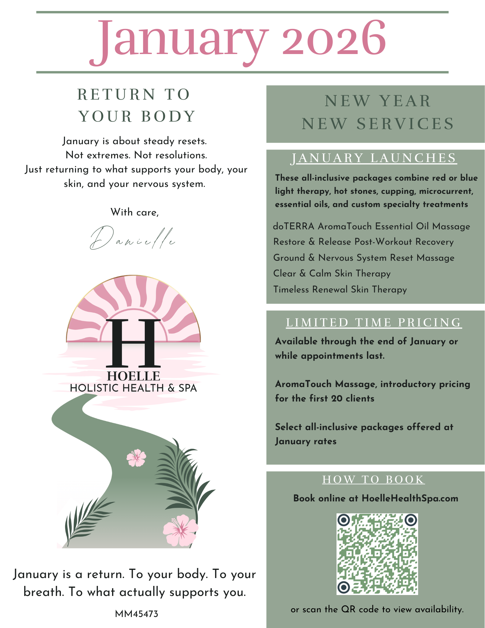 Hoelle Holistic Health and Spa is dedicated to truly supporting wellness from the inside out, offering an extensive range of services including: